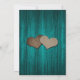 Rustic teal bridal shower invitation featuring a mason jar with two burlap hearts against a barn wood background. Matching items available.