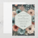 A captivating design featuring a blend of deep teal, dusty rose, and muted coral blossoms. Evokes a sense of romantic mystery with its rich, painterly floral arrangement. The moody atmosphere is softened by delicate petals and subtle leaf details.