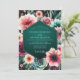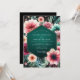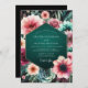 This design features a rich tapestry of deep teal and vibrant pink blooms, interspersed with soft coral and blush petals. Lush, dark foliage anchors the opulent floral arrangement, creating a sophisticated and moody aesthetic. The mood is romantic and dramatic, perfect for a stylish affair.