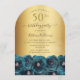 Invitation Teal Rose Floral Gold 50th Birthday Party