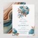 Elegant teal watercolor roses paired with warm copper leaves create a romantic and modern floral frame design. This invitation features floral arrangements in all four corners with a clean white center, perfect for adding your wedding details. Ideal for fall weddings, winter weddings, boho celebrations, and modern romantic themes. Beautiful for invitations, RSVP cards, details cards, programs, and full wedding stationery suites.