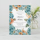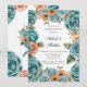 A beautiful floral wedding design featuring watercolor teal roses and soft coral daisies arranged in elegant corners on a clean white background. Perfect for modern romantic weddings, bridal showers, or engagement invitations. This design blends classic charm with a touch of contemporary style, creating a timeless and sophisticated look for your special day.