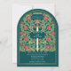 Set the tone for your medieval fantasy wedding with a bold arch invitation design—a grand sword surrounded by florals, and gold accents against a teal background. Perfect for couples dreaming of an epic, romantic celebration. Make your love story legendary from the very first glance! NOTE: the gold featured in this design is NOT real foil.