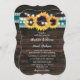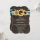 Invitation Teal Sunflower Rustic Wood String Lights Wedding