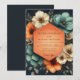 This design evokes the drama of a classic still-life painting with its rich, moody atmosphere. A striking palette of deep teal, warm umber, and soft ivory blooms emerges from a dark, inky background. Beautifully rendered anemones create a sophisticated and artistic botanical display, perfect for a romantic and elegant union.