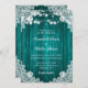 Invitation Teal Wood Floral Lace String Lights Rustic Wedding