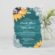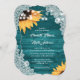 Invitation Teal Wood Lace String Lights Sunflower Wedding