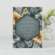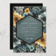 A lush arrangement of blooming flowers in deep teal and golden yellow hues creates a vibrant and romantic backdrop. Delicate petals and textured foliage evoke a sense of natural elegance and artistic charm. This design captures a rich, painterly feel for a memorable occasion.