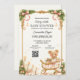 This winter baby shower invitation brings a sweet and cozy holiday charm to your celebration with its soft tones, gold accents, and the most adorable teddy bear nestled in a festive sleigh. Evergreen branches, pink bows, twinkling ornaments, and glowing candles frame your details in a warm and welcoming way that feels perfect for a Christmas season gathering. The gentle palette and storybook style create a joyful atmosphere for honoring the mother to be, and you can easily personalize every detail to make the event feel even more special.