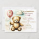 Invitation Teddy Bear Balloon rose 1er anniversaire