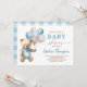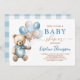 Invitation Teddy Bear Boy Blue Plaid Pastel Baby shower