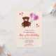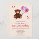 Invitation Teddy Bear First Birthday Balloon Girl's Cream