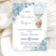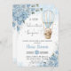 Invitation Teddy Bear Hot Air Balloon Blue Floral Baby shower