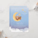 Soft sky artwork shows a cuddly bear resting on a glowing moon with gentle star accents, ideal for a nursery theme or baby shower celebration. Calm pastel tones create a peaceful bedtime mood for welcoming a little one.