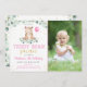 Invitation Teddy Bear Pique-nique Rose Floral Anniversaire