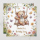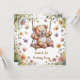 Parfait pour la fête d’anniversaire d’un bébé. Corde balançant avec un mignon ours en Teddy moelleux dans la peinture aquarelle avec des arbres et des fleurs sauvages.
