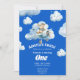 Teddy's Sky Safari : 1er anniversaire Expédition Invitation Une scène fantaisiste avec un ours en peluche naviguant en toute confiance dans un avion à travers des nuages moelleux, symbolisant le voyage de la première année d'un enfant. "Ours, avion, premier anniversaire, pilote", "célébration, aventure, ciel, nuages", "voyage, jalon, Teddy, vol, lunatique", "joie, invitation, Soaring, câlin", "un an, excitation, amis", "Famille, aviation, exploration, adorable, bonheur"