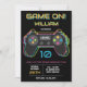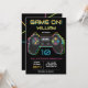 Invitation Teen Gaming Gamer Video Game Player Neon Birthday