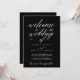 Elégant, moderne et délicat script de calligraphie noire que vous pouvez customiser avec vos infos pour le rendre en outre spécial. Le design minimaliste romantique présente une belle et élégante typographie sur un Beau arrière - plan au look épuré et sobre. Enregistrez du papier en incluant les détails au verso du faire-part de mariage plutôt que sur une carte de boîtier séparée. Inclure également les informations RSVP si votre invité répondra par voie électronique (facultatif).