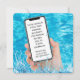 Tenez un téléphone portable dans l'eau avec du texte pour un invitation de la fête du 13e anniversaire de la piscine. Tout le texte peut être modifié.