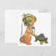 Image vintage de bébés et d'enfants avec une jeune fille blonde mignonne avec des queues de cheval parlant sur son premier téléphone. Appelez tous vos amis et annoncez-leur la bonne nouvelle !