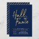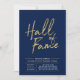 Célébrez votre journée spéciale avec cette simple invitation de fête élégante. Ce design présente un script de brosse chic "Hall of Fame" avec une disposition propre en combinaison bleu marine et or. D'autres conceptions et fournitures de fête sont disponibles à ma boutique BaraBomDesign.