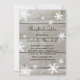 De jolis flocons de neige sur un fond de planche de grange décorent cette invitation amusante et coquine. Faites défiler la page vers le bas pour voir la collection complète.