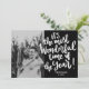 C'est le moment le plus merveilleux de l'année de la typographie brossée écrite à la main sur un élégant arrière - plan noir. Utilisez le modèle pour ajouter votre photo verticale ou portrait, vos noms et votre année. Les couleurs peuvent être facilement changées pour correspondre à votre schéma de couleurs photo. Cette conception fait partie d'une collection, d'autres couleurs disponibles