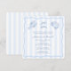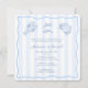 Design moderne de carte d'invitation pour une fête prénuptiale ou une soirée de fiançailles mixte autour d'un boil de fruits de mer, avec des éléments d'illustration originaux de style doodle. Illustré ici en bleu et blanc, veuillez noter que TOUTES les couleurs de tous les éléments peuvent être personnalisées (rayures, fond, crustacés, bordure). Toutes les illustrations de cette collection d'invitations sont mon travail original (dessiné à la main et / ou peint à la main).