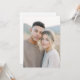 This wedding invitation features a warm, intimate photograph of two individuals standing closely together in an outdoor setting with soft, blurred natural elements like grass and hills. The color palette includes earthy tones such as beige, light brown, and cream, creating a serene and inviting atmosphere. The design captures realistic textures in the knit sweaters worn by the figures, enhancing the lifelike depiction. With its tender mood and balanced composition, this template is perfect for personalizing your special day, emphasizing connection and affection through its straightforward, realistic style.