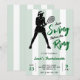 Celebrate her finding her perfect match with this cute green and white striped Last Swing Before the Ring tennis bachelorette party invitation. Personalize it with your event details. Great for sports fans.