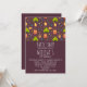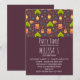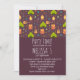 Une invitation d'anniversaire de camping rustique avec un motif thématique de camping amusant. Sur un fond brun rougeâtre. Les éléments du motif comprennent un feu de camp, une tente, une guitare, une pelle et un sac à dos.