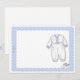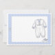 Invitation de baptême ou de christening avec une tenue de baptême blanche et bleue avec une bordure bleue ondulée et un accent de croix blanche. Les invitations sont faciles à personnaliser et viennent avec des enveloppes et votre choix de papier. Graphiques ©http://delightful-doodles.com