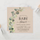 Terracotta Eucalyptus Verdure Aquarelle botanique Succulente Printemps Genre Neutre Baby Boy ou Baby Girl Baby Shower Invitations sur arrière - plan blanc - comprend belle et élégante typographie script avec feuilles botaniques modernes et verdure pour la célébration spéciale Mère à être.