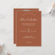 Cette somptueuse invitation au mariage classique et moderne de Terracotta présente un agencement élégant et formel, parfait pour les couples à la recherche d'un choix exceptionnel pour leur mariage. Les trois photos disposées dans une belle arche à l'arrière sont facilement personnalisables. La typographie de script sophistiquée ajoute une touche de luxe et de glamour à votre grand jour, tandis que l'inclusion d'un code QR fournit un moyen unique et pratique pour vos invités d'accéder à tous les détails importants de votre mariage et à RSVP en ligne. L'approche minimaliste de la conception garantit que l'accent est mis sur les aspects importants de votre journée spéciale, rendant cette invitation parfaite pour les couples qui veulent un look chic et sobre. Fabriquée avec une grande attention au détail, cette invitation unique et élégante impressionne vos invités par son atmosphère luxueuse. Idéal pour un mariage de automne, mariage de printemps, mariage boho, mariage d'été, ou tout mariage moderne.