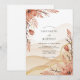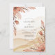 This design captures a warm, bohemian spirit with soft watercolor washes evoking rolling desert dunes. A palette of terracotta, burnt orange, and cream creates an earthy aesthetic. Delicate dried foliage, slender branches, and rustic cosmos wildflowers adorn the artwork with organic elegance. The flowing watercolor layers provide a sense of depth and tranquility.
