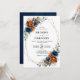 Elégant bleu marine, Terracotta, Orange terroir à thème floral faire-part de mariage avec élégant bouquet de bleu marine, Terracotta couleur rose pivoines et vert eucalyptus feuilles. Veuillez me contacter pour toute aide sur la personnalisation ou si vous avez besoin d'un autre produit avec ce design.