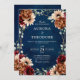 Elégant bleu marine, Terracotta, Orange terroir à thème floral faire-part de mariage avec élégant bouquet de bleu marine, Terracotta couleur rose pivoines et vert eucalyptus feuilles. Veuillez me contacter pour toute aide sur la personnalisation ou si vous avez besoin d'un autre produit avec ce design.