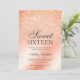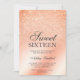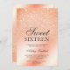 Un design élégant et luxueux en terre cuite orange imitation parties scintillant ombre métallique avec élégante typographie calligraphique pour une invitation à la fête Sweet 16 anniversaire.