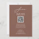 Élégant Script en terre cuite QR Code Tout en un minimaliste carte de Faire-part de mariage. Célébrez votre journée spéciale avec cette belle et élégante carte de faire-part de mariage pour embellir votre occasion spéciale. Tous les textes sont pré-arrangés pour que vous personnalisiez facilement et rapidement avec vos propres détails. Si vous avez besoin d'une personnalisation ou d'une correspondance, envoyez un courriel à alldaybreakfastzazzle@gmail.com - nous aimerions vous aider.