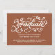 Fêtons le diplômé ! Invités Invitations à votre événement avec cette invitation personnalisable de graduation photo. Il présente une calligraphie rustique aux accents florissants et feuillage. Personnalisez-le en ajoutant vos détails. Cette invitation de graduation en terre cuite est également disponible dans d'autres cartons et couleurs.