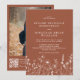 Invitation vos proches dans le style avec cet élégant faire-part de mariage à fleurs en terre cuite avec photo et code QR. Doté de fleurs sauvages dessinés à la main dans des tons chauds d'automne, ce design rustique et romantique donne le ton parfait pour un mariage dans le jardin d'automne. Customisez avec vos noms, les détails du mariage et les polices de caractères pour en faire le vôtre. Idéal pour les mariages de plein air, de boho, de campagne ou de botanique.