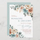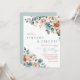 Cette élégante invitation au mariage présente un design floral d'aquarelle romantique avec des roses en terre cuite, des fleurs bleues turquoises et des pétales blancs crémeux. Le feuillage vert feuillu apporte une touche vintage, ce qui le rend parfait pour un thème mariage rustique, boho-chic ou d'inspiration nature. Personnalisez votre journée spéciale avec ce design botanique intemporel ! . Pour la personnalisation ou des produits supplémentaires avec ce design, n'hésitez pas à me contacter.