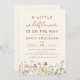 Célébrez l'arrivée d'un nouveau lot de joie avec un beau petit fleur sauvage sur le chemin du baby shower thématique. Rejoignez-nous pour un après-midi rempli d'amour et de bonheur alors que nous honorons les futurs parents. L'invitation comporte une étonnante orange brûlée - arrière - plan en terre cuite, accentuée par un éventail de fleurs sauvages dynamiques.