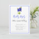 Famille d'Invitations et amis à votre mariage avec cette élégante invitation florale Texas Bluebonnet. Il dispose d'une vue rapprochée de fleurs de bleuets et d'un script élégant avec des accents bleus. Personnalisez en ajoutant les noms, la date, l'heure, le lieu et d'autres détails de l'événement au verso. La mariage florale bluebonnet est parfaite pour les mariages du printemps et de l'été du Texas.