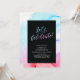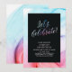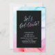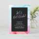 Cette belle invitation d'anniversaire présente une typographie élégante "Célébrons !" avec un fond de texture de fluide rouge, violet et bleu.