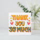 A bright and cheerful “Thank You So Much” typography design featuring bold, colorful letters with layered shadows. Surrounded by cute heart doodles and tiny star accents, this artwork spreads positivity and gratitude in a fun, uplifting style. P
