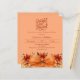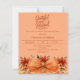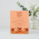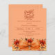 Une couleur arrière - plan atomique tangerine. Décoré d'un grand arc orange et de fleurs de chute. Personnalisez et ajoutez les détails de la fête. Texte : Grateful and Blessed. 1 feuille = 1 invite imprimé bord à bord.