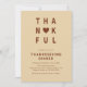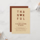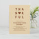 Célébrez la saison de la gratitude avec cette Invitation Thankful Modern Minimalist Thanksgiving Diner. Doté d'une typographie audacieuse avec un accent de coeur dans les tons chauds de l'automne, ce design propre et contemporain ajoute une touche élégante à votre réunion. Parfait pour un dîner Thanksgiving moderne, une fête d'Amical ou une fête d'automne, ce modèle éditable est facile à customiser et fait un gardien chic.