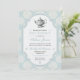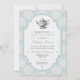 Célébrez une personne ou un couple spécial avec un traditionnel thé party britannique. Le fond de l'invitation est une image de papier bleu vintage ornée de rosettes blanches. Le cadre avec un centre en papier blanc vintage présente une illustration vintage d'une théière ornée. Suffisamment polyvalent pour être utilisé pour une douche de mariée ou de couple, une baby shower, un anniversaire, un brunch de mariage ou un déjeuner spécial. Disponible en couleurs alternatives avec des produits assortis.